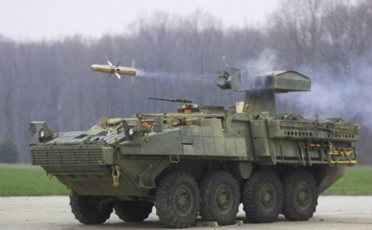 资料图:美军斯特赖克装甲车已加装反坦克导弹