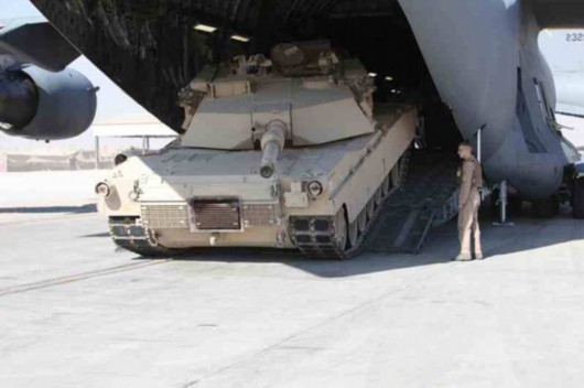 11月25日,美国空军C-17A战略运输机将M1A2重型主战坦克运抵阿富汗。首批16辆M1A2坦克将被部署在阿富汗北部的赫尔曼德省部分地区,主要由美国海军陆战队操纵,可为地面部队提供远程精确火力支援。