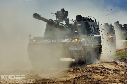 资料图:韩国陆军K-9自行火炮参加作战演练