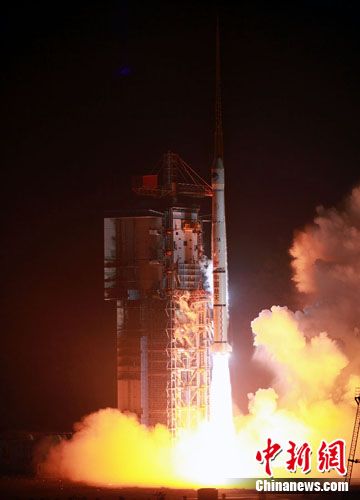 “长征三号甲”运载火箭18日凌晨在西昌卫星发射中心点火发射,成功将中国第7颗北斗导航卫星送入太空。中新社记者 孙自法 摄