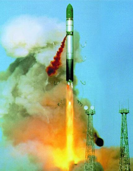 资料图:俄制“撒旦”SS-18型洲际弹道导弹是目前世界上最大的战略导弹。