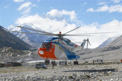 国产AC313直升机成功登陆珠峰大本营(图片来源:中国航空报)