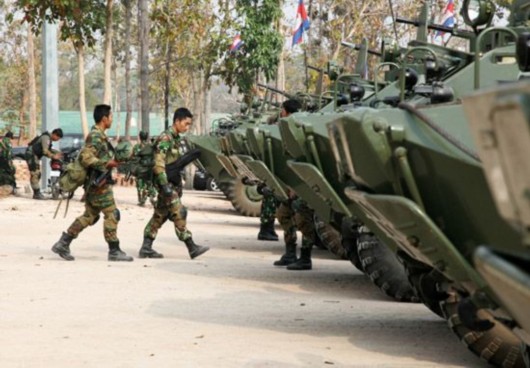 2月9日,大批柬埔寨士兵驻扎在柬泰边境柏威夏寺附近地区,为可能再次爆发的柬泰武装冲突做准备。新华社发(披隆 摄)