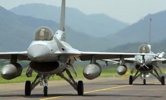 资料图:韩国空军F-16战斗机在跑道上滑行