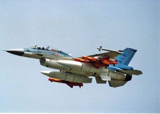 F-2以美国F-16C/D型战机为蓝本,是美日联合设计的产物。日本航空自卫队计划装备98架,目前仍在低速生产中。F-2战机长15.52米,翼展11.13米,高4.69米,最大起飞重量2.2吨,最大飞行高度1.8万米,装备一台通用动力系统公司的F110-GE-129型涡扇发动机,载荷重量1.5吨。在武器配置方面,F-2装备一门20毫米口径JM61A1型航炮,可搭载美制AIM-7F/M“麻雀”中程空对空导弹和AIM-9L近程空对空导弹,以及日本自行研发的空战武器。与经常执行对地支援任务的F-16相比,F-2的空战性能更强,称得上是F-16的“空优”版。