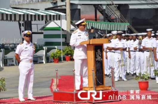 巴基斯坦舰队司令官阿巴斯中将在仪式上致辞(摄影 记者王茜婷)