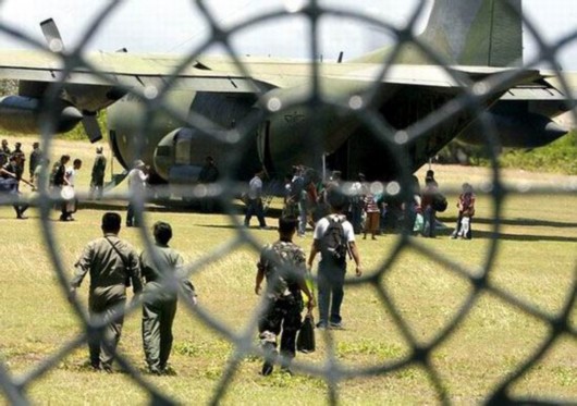 2008年5月2日,南沙群岛中业岛上的菲律宾士兵和C-130运输机。中业岛是南沙群岛第二大岛,自古是中国领土,自1974年1月被菲律宾侵占,菲律宾在岛上修建了机场。