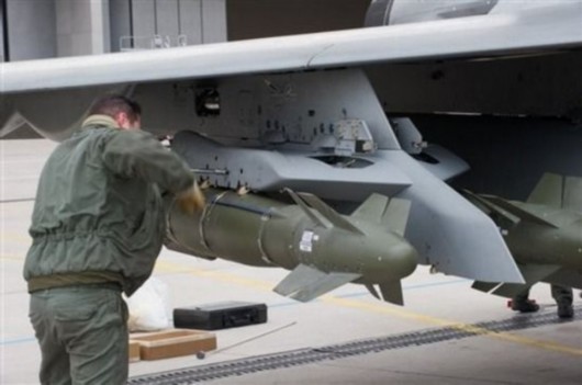 3月19日,在位于法国东部的南锡(Nancy)内,地勤人员正在为幻影2000、阵风战机加挂AASM空地导弹与GBU-12激光制导炸弹。以执行利比亚禁飞任务。