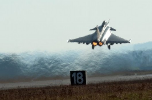 3月20日,法国东部圣迪济耶空军基地,法军阵风战机起飞赴利比亚执行任务。