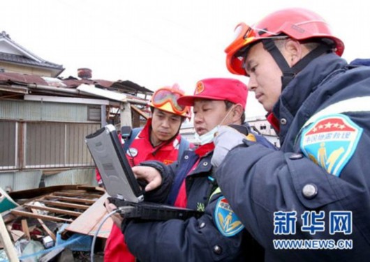 3月16日,在日本宫城县大船渡市重灾区,中国国际救援队队员利用生命探测仪进行生命探测。当日,正在日本实施救援的中国国际救援队继续进行搜救活动。 新华社记者陈建力摄