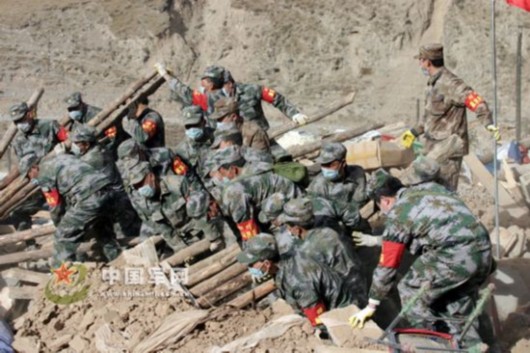 资料图:2010年4月,中国军人在青海玉树地震灾区救灾时清理垮塌房屋