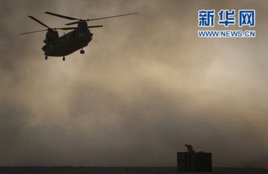 2011年6月9日资料照,在阿富汗南部赫尔曼德省一处美军基地,支努干准备降落。新华社/美联