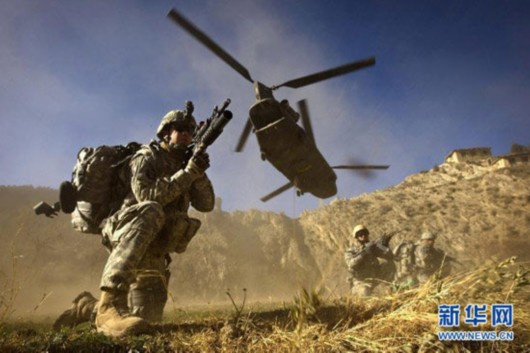 2008年11月20日资料照,支努干直升机搭载美军士兵在阿富汗霍斯特省山区执行任务 新华社/法新