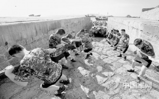 强台风“梅花”逼近之际,驻守舟山市东福山岛的东海舰队某观通站官兵紧急出动,协助当地渔民将岛上30多艘渔船拉上海岸躲避风浪。中国军网—解放军报 琚振华 摄