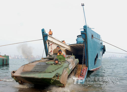 济南军区某摩步师严格按照新大纲要求,把部队拉到某海域从严从难进行抗眩晕、海上装卸载、沙滩地驾驶等课目训练,提高部队遂行多样化军事任务的能力。