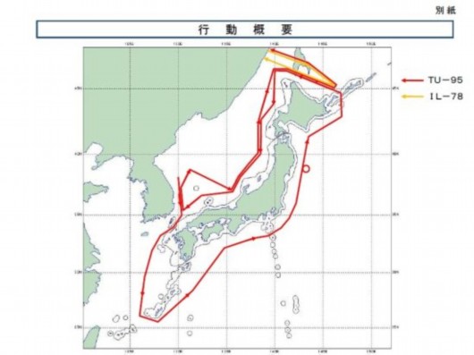 日本防卫省8日称有2架俄军“图-95”轰炸机从长崎县对马海峡经太平洋及北方领土周边绕日本附近空域飞行一周,鉴于存在“侵犯日本领空”的可能性,航空自卫队战机紧急升空。