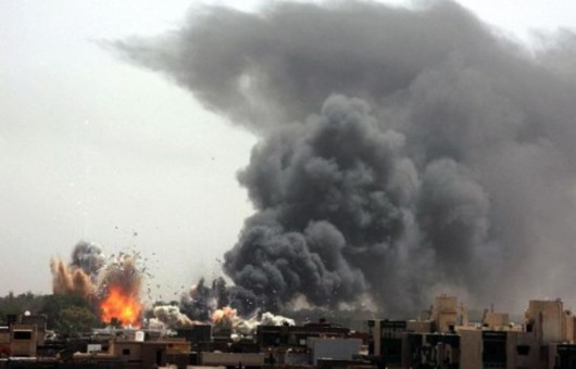 资料图:北约战机在空袭卡扎菲政权的军事目标