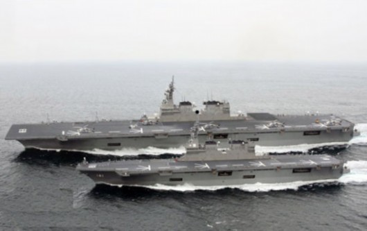 近年来,日本大造直升机驱逐舰,目前服役的“日向”号2009年下水,长197米,宽33米,高48米,可搭载11架直升机,满载排水量为1.9万吨,已经超过泰国的新型航母。外界惊呼,日本是借直升机驱逐舰之名,行造直升机航母之事。
