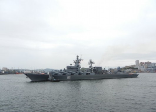 资料图:俄罗斯太平洋舰队旗舰光荣级导弹巡洋舰瓦良格号。