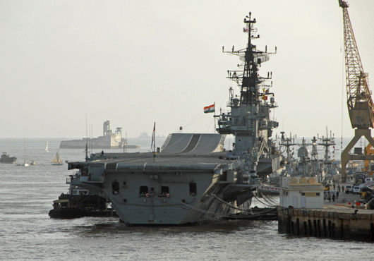 停靠在克钦船厂码头的印度海军维拉特号航母