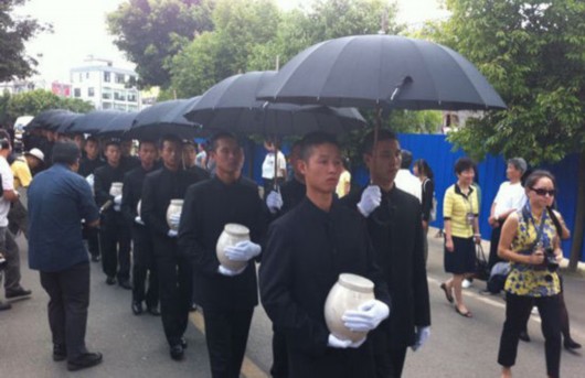 安魂曲响起,国殇墓园沉重肃穆,道路两旁站满了前来迎接远征军遗骸的人们,老人、农民、学生、华侨……大家不论辈分、不分职位,自觉一字排开,注视着英雄的骨灰渐渐远去。