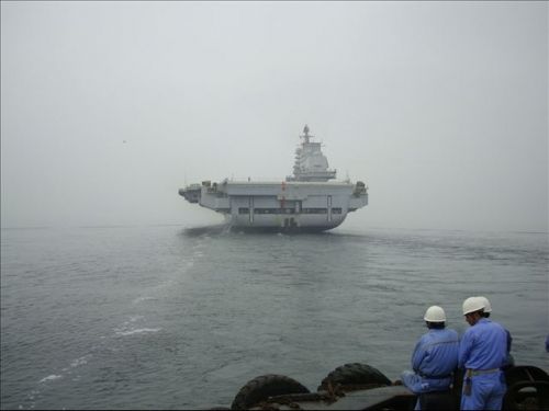 资料图:正在试航中的中国航母。