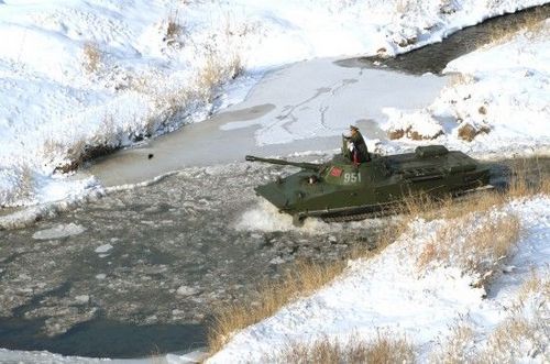 资料图:朝军的PT-76水陆两栖坦克在进行训练。