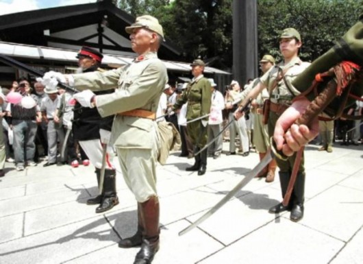 资料图:日本右翼分子身穿二战军服为战犯招魂。