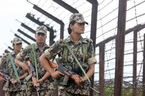 资料图:手持自动步枪在边境巡逻的印度女兵。