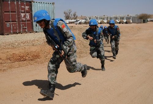 资料图:2010年2月,中国驻苏丹维和部队在进行演习。