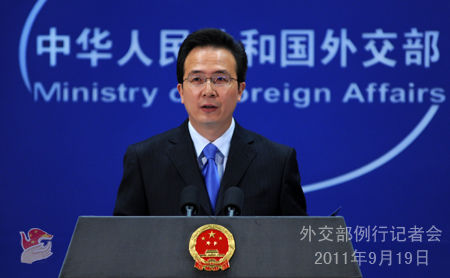 外交部发言人洪磊19日主持例行记者会