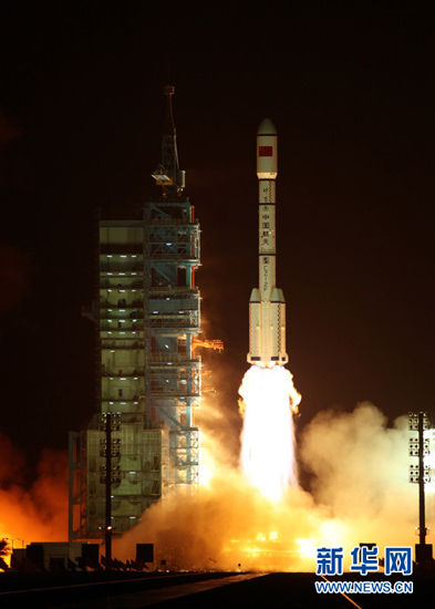 9月29日,中国在酒泉卫星发射中心用长征二号F运载火箭将天宫一号目标飞行器发射升空。秦宪安 摄