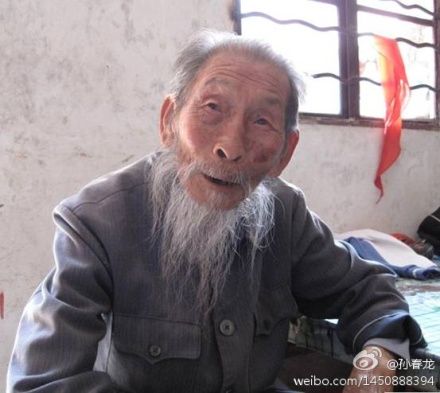 抗战老兵付心德。图片来源:孙春龙新浪微博