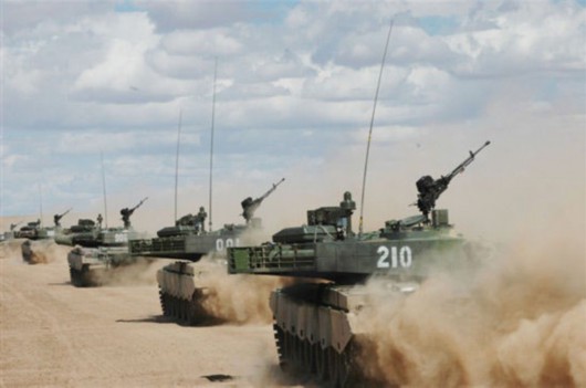 文章称中国对俄罗斯武器和能源进口的依赖已经降低。图为解放军重型99式坦克编队