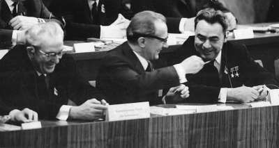 资料图:勃列日涅夫(右)对执掌克格勃的安德罗波夫(中)暗中防范。
