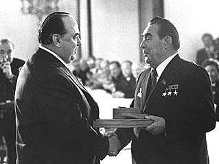 茨维贡(左)是勃列日涅夫的心腹,也是一位业余间谍小说家。