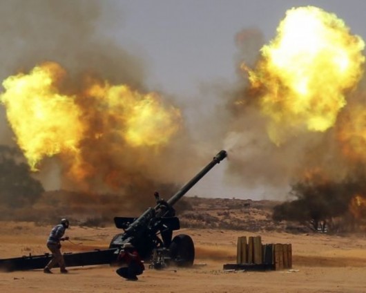 资料图:9月15日,利比亚当局武装在炮击苏尔特。