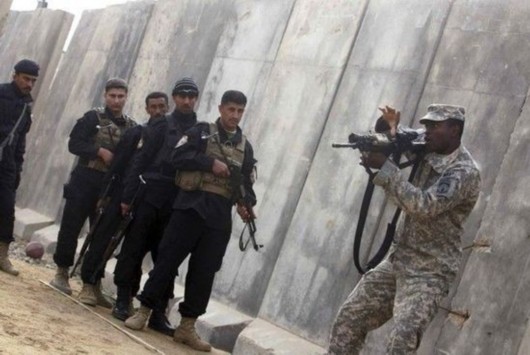 资料图:2009年12月7日,驻伊美军教官在巴格达西南方向卡尔巴拉美军基地内,训练伊拉克警察。