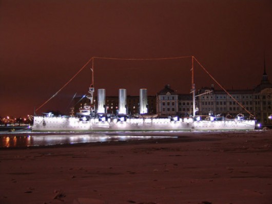 资料图:停泊于圣彼得堡的阿芙乐尔号,巡洋舰这艘传奇的巡洋舰经历了三次革命和四场战争。