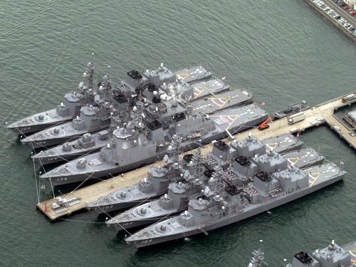 资料图:停泊在横须贺海军基地的日本海上自卫队第一护卫群舰艇。