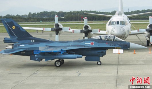 资料图:在10月16日的航空自卫队阅兵式上,日本国产的F-2A战斗机驶过检阅台。
