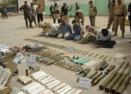 资料图:伊拉克政府军缴获的什叶派武装的武器弹药。