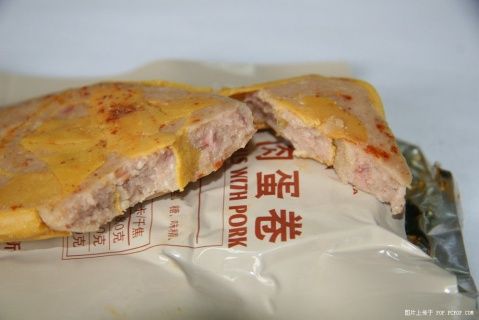 资料图:解放军单兵自热口粮中的猪肉蛋卷。