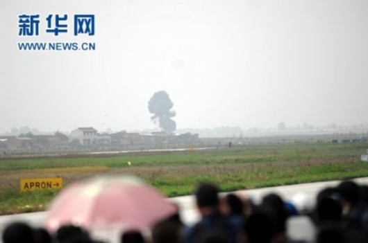 10月14日上午,一架国产“飞豹”战机在表演低空飞行过程中突然失控,坠毁在观众区以西约2公里的地方。当时飞机上有两名飞行员,一名飞行员跳伞生还,另一名失踪飞行员后证实已经遇难。