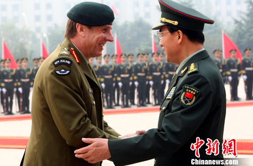 10月21日上午,中国人民解放军副总参谋长章沁生上将,在北京八一大楼为来访的新西兰陆军司令蒂莫西·基廷少将举行欢迎仪式,陪同检阅中国人民解放军陆军仪仗队。随后双方在友好的气氛中就共同关心的问题举行了会谈。
