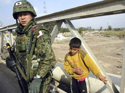 日本近年来打擦边球,不断突破向海外派兵的限制,图为在伊拉克执行任务的日本自卫队员。