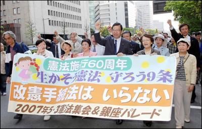 2011年11月3日是日本现行宪法(又称“和平宪法”)公布65周年纪念日。该宪法第九条规定,日本永远放弃以国权发动的战争、武力威胁或武力行使作为解决国际争端的手段,不保持陆海空军及其他战争力量,不承认国家的交战权。因此,今天本应是日本各界努力倡导和平、忏悔战争罪行的日子。然而,日本右翼媒体却借此时机大肆鼓吹修改和平宪法,并将“自卫队”改变为“军队”。