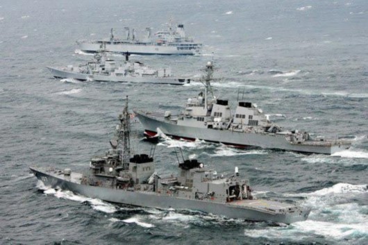 资料图:日美印三国海军舰艇编队航行