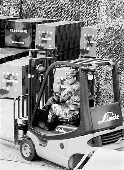 图为该基地官兵实施物资紧急装载。熊远清摄