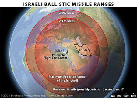 11月2日,居住在以色列中部的民众亲眼目睹到一个拖着白色尾迹不明飞行物直冲天空。虽然以色列国防部称之为“火箭推进系统测试”,但外界几乎一致认为这是以军在试射“杰里科”-3型弹道导弹,潜在目标就是伊朗核设施。外界对“杰里科”导弹的性能知之甚少,一般认为这些导弹部署在以色列中部、耶路撒冷以东的加固掩体中。西方专家猜测,“杰里科”-3型导弹为三级设计且使用固体燃料,可配备约749公斤重的核弹头或是2到3个低当量的分导式弹头,有效射程高达6400公里,可打击中东地区范围内的任何目标。《今日以色列》杂志甚至断言“欧洲、亚洲以及北美”都处于该导弹打击半径之内。供职于美国“战略与国际问题研究中心”的约旦分析家阿卜杜拉·杜坎曾在一份报告中称,以色列具备动用42枚“杰里科”导弹摧毁或瘫痪伊朗核设施的能力。
